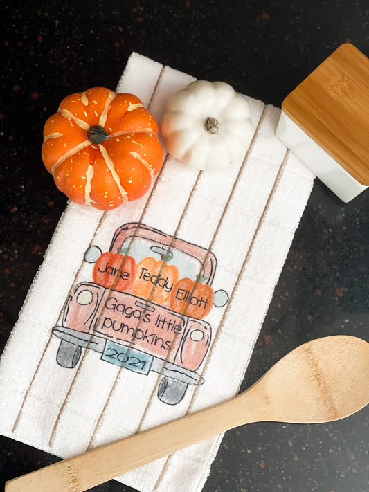 Personalized Fall Pumpkin Truck Kitchen Towel